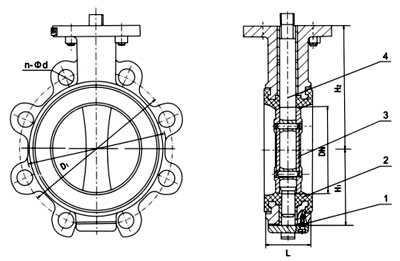 ![]() 部件列表:1、閥體 2、閥座 3、蝶板 4、閥桿 |